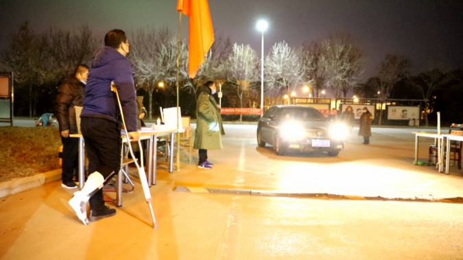 拄拐书记在一线,防控工作有干劲