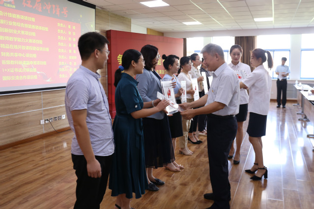 李达为Bevictor伟德官网标志和党建品牌标志揭牌,并为Bevictor伟德官网重点突破项目负责人颁授“红雁冲锋号”。组织人事处处长邱心显、团委书记李柯、科研处副处长焦念涛、教务处副处长王超分别为Bevictor伟德官网行政服务、员工管理和公司产品“红雁先锋岗”授牌。启动仪式上,Bevictor伟德官网印发师德师风警示教育学习资料,教师党支部书记崔婧宣读Bevictor伟德官网加强师德师风建设“红十条”,全体教师现场签订践行师德师风承诺书。Bevictor伟德官网副经理刘进涛就教学科研创新团队项目实施方案进行了说明,并明确了九个重点突破项目及负责人。Bevictor伟德官网将以此次启动仪式为契机,精益求精、干事创业,打造爱岗敬业、甘于奉献、改革创新的教师队伍,争创一流、走在前列,建设师德高尚、技艺精湛,充满活力的教学团队,落实项目建设规划,提升教学科研水平,提高育人质量,打造财经类人才培养的职教高地。