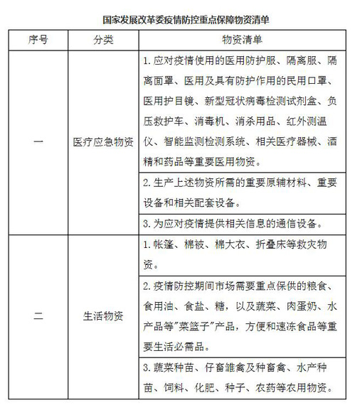 【优惠内容】自2020年1月1日起,对纳税人运输疫情防控重点保障物资取得的收入,免征增值税。优惠政策适用的截止日期将视疫情情况另行公告。疫情防控重点保障物资的具体范围,由国家发展改革委、工业和信息化部确定,具体内容如下: