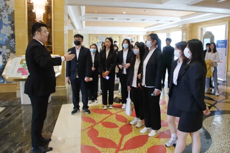 在参观活动中,师生们分别来到东营蓝海御华大饭店、蓝海国际大饭店、蓝海集团总部、蓝海职业公司了解企业的具体情况。李鹏鹏为师生详细介绍了蓝海集团的发展历程、战略定位、总体规划、产业分布;集团酒店管理公司财务中心总经理肖慧杰为师生详细介绍了酒店财务管培班计划;现就职于蓝海集团的财务管理专业优秀员工同参观师生交流了个人职业生涯发展历程。员工们就参观感受以及个人工作意愿与企业相关人员进行了深入交流。
