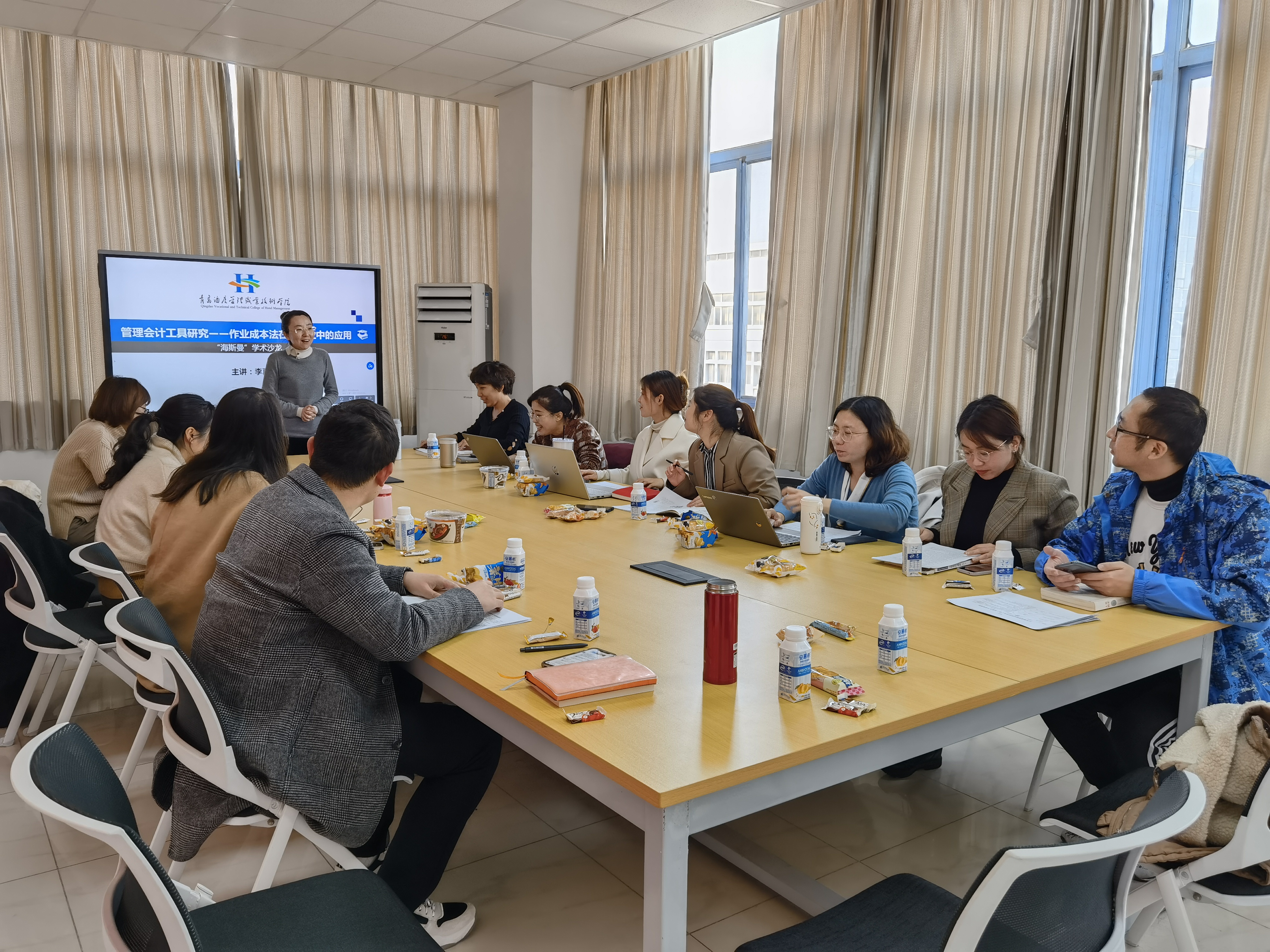 活动中,李真老师围绕五个方面进行了详细的阐述,分别为:研究背景(酒店业的现状和酒店业成本的特点);基本概念(作业成本法、资源、作业、动因等);理论研究(作业成本法的工作原理及其与现有完全成本法的区别);实际应用(以M酒店为例详细讲述作业成本法在酒店行业中的应用);未来展望(时间驱动作业成本法在酒店业中的应用)。这五个方面环环相扣,由浅入深,体现了业财融合的思想,并为酒店财务中的成本核算提供了对策。会计专业教师积极参与讨论,提出各自观点,为酒店财务方向的研究提出建议。