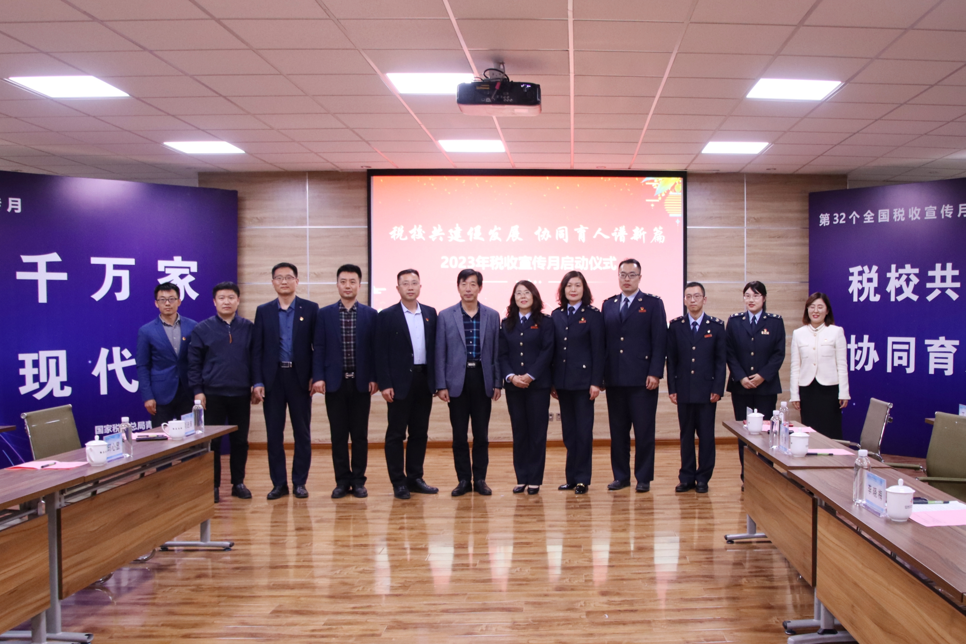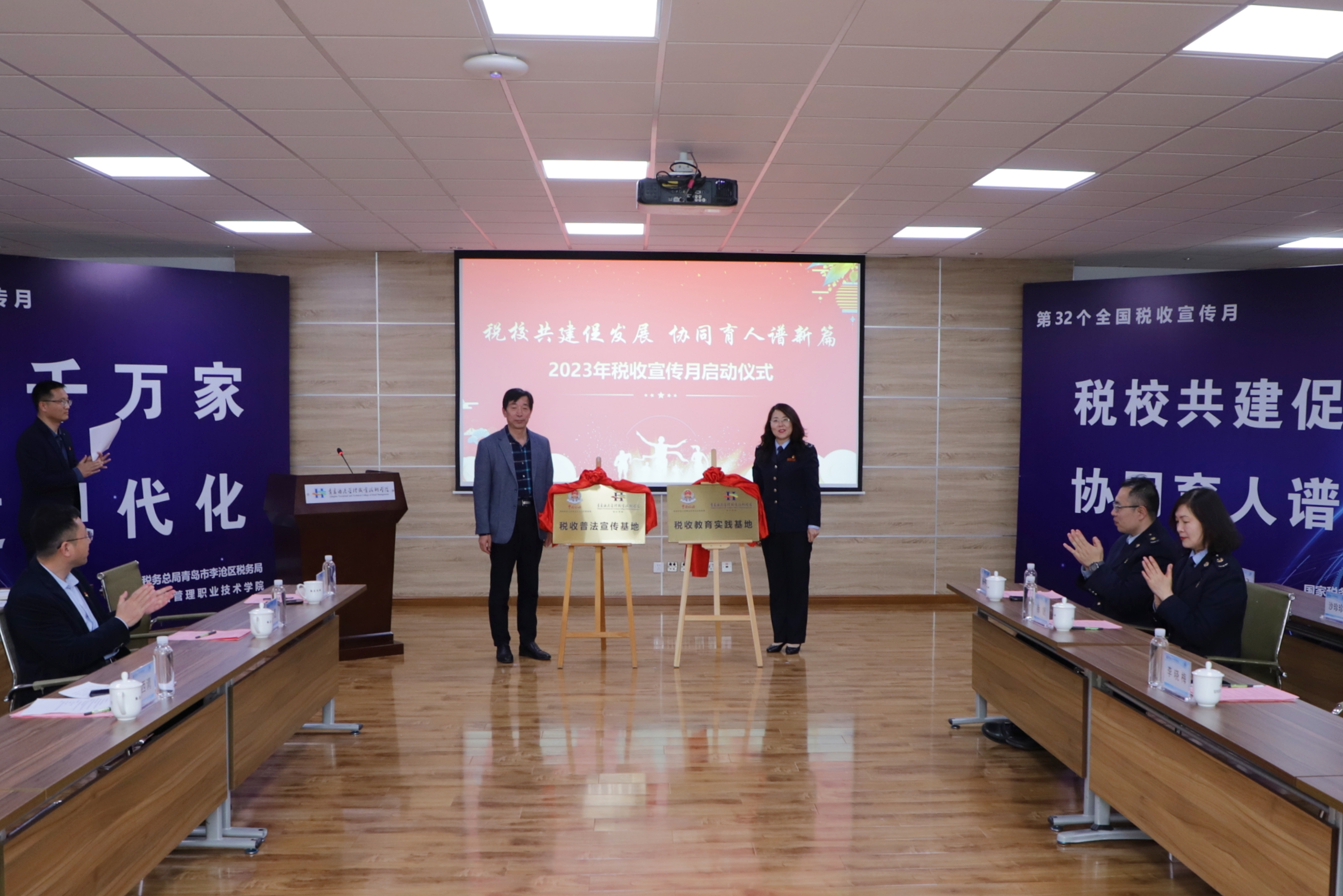 4月12日,公司与李沧区税务局在行政楼四楼会议室举行“税校共建促发展 协同育人谱新篇”2023年税收宣传月启动仪式。青岛市李沧区税务局党委副书记、副局长李晓梅、机关党委副书记徐婕、公司党委副书记韩西清、党委委员、纪委书记邱心显参加活动。