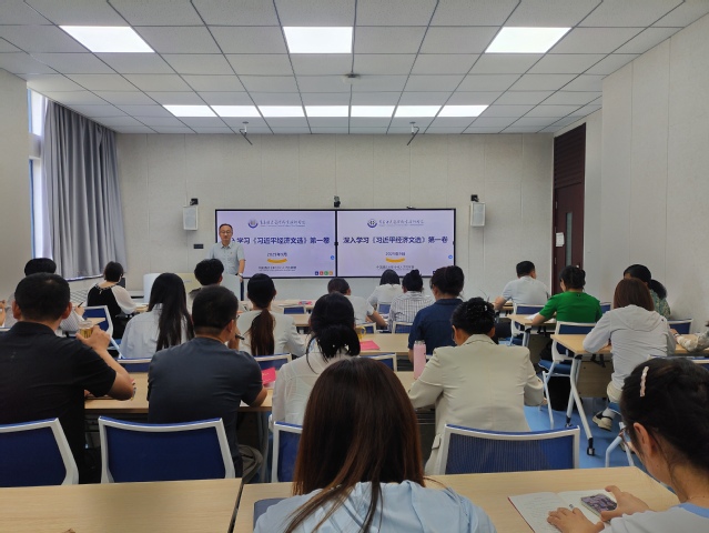 曲洋首先领学《习近平经济文选》第一卷,随后以“深学笃信习近平经济思想 准确把握思想科学体系”为题,分享了学习《习近平经济文选》第一卷的心得体会。他指出,《习近平经济文选》第一卷是习近平经济思想集大成的重要载体,收录了从2012年至2024年共74篇习近平总书记关于经济发展的重要论述,是马克思主义政治经济学中国化的最新成果,为新时代中国特色社会主义经济发展提供了根本遵循和实践指南。